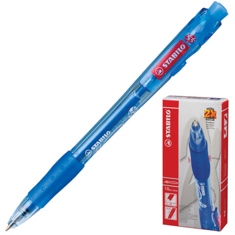 Kuličkové pero se stiskacím mechanismem. Extra velký zásobník náplně umožňuje napsat až 5 500 m, což je 2× více, než standardní kuličková pera! Komfortní úchopová zóna. Náhradní náplně v modré a černé barvě - snadná výměna.