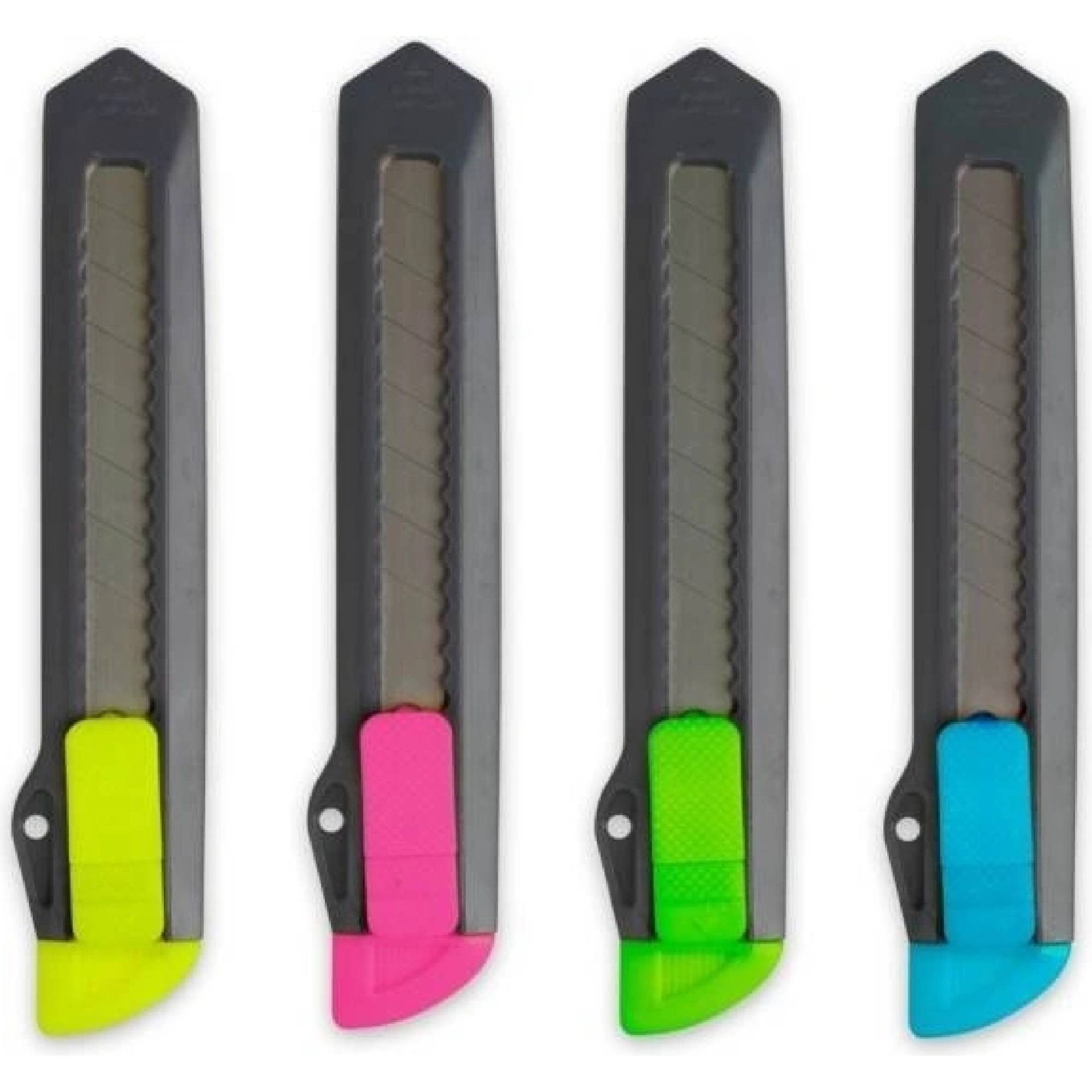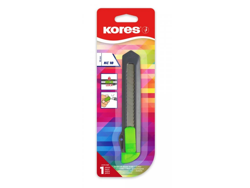 Kvalitní plastový odlamovací nůž s manuálním bezpečnostním zámkem nože a sundávacím klipem s drážkou na zalomení čepele.